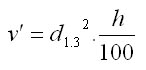 At the same time, a deviation of the competition index from average conditions is calculated. This deviation is used in other models of the simulator. From tree diameter and height, an auxiliary variable v', representing tree volume, is calculated: